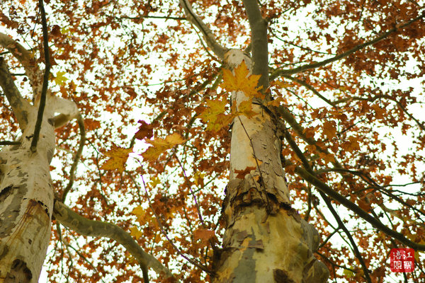 金色的梧桐樹葉,也成了兩彈城的一道靚麗風景,為寒冷的冬日增添了一份暖意和活力。