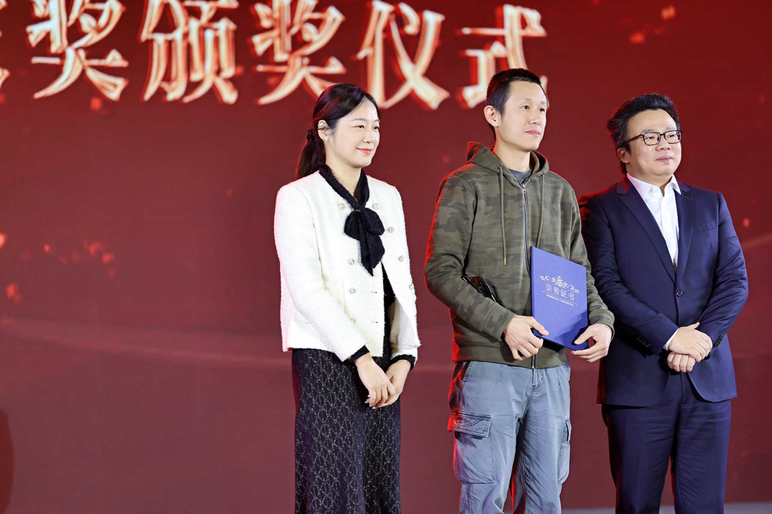 第九屆華語青年作家獎的“非虛構(gòu)作品獎”獲得者胡安焉(中)領(lǐng)獎