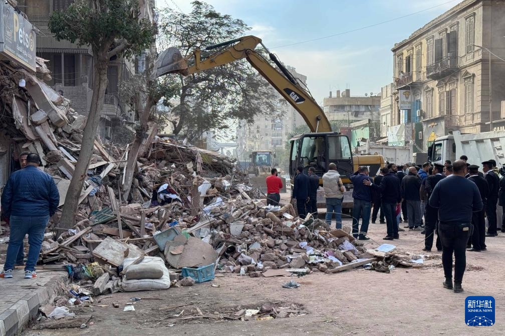 12月10日,救援人員在埃及首都開羅的樓房倒塌事故現場開展搜救。