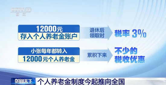 小張存到個(gè)人養(yǎng)老金賬戶(hù)里的12000元,要到等他退休后,領(lǐng)取個(gè)人養(yǎng)老金的時(shí)候,才需要納稅,稅率是3%。如果小張每年都轉(zhuǎn)入12000元個(gè)人養(yǎng)老金的話(huà),累積下來(lái),稅收優(yōu)惠也是不少的。