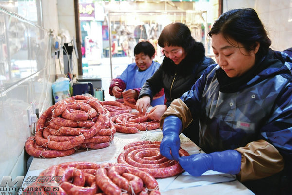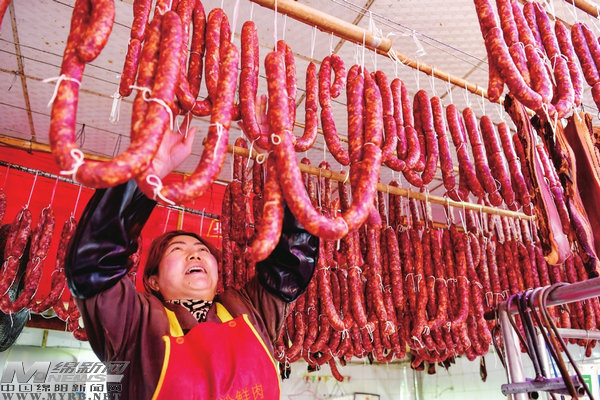 裝臘腸、腌臘肉……隆冬時節(jié),正是晾曬香腸、臘肉的好時機。近日,記者在綿陽城區(qū)農貿市場看到,許多臘味制品店開始忙碌起來,店內店外掛起了一排排讓人垂涎的臘制品。建設街農貿市場臘味制品區(qū),人潮涌動,店鋪忙著為市民灌制香腸、儲備臘制品,忙得不亦樂乎。
