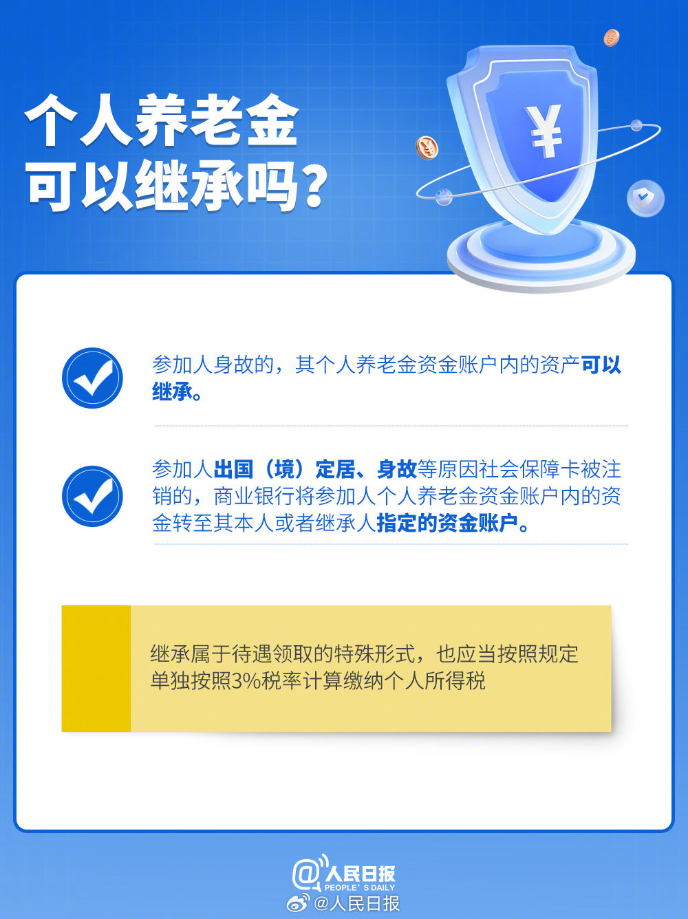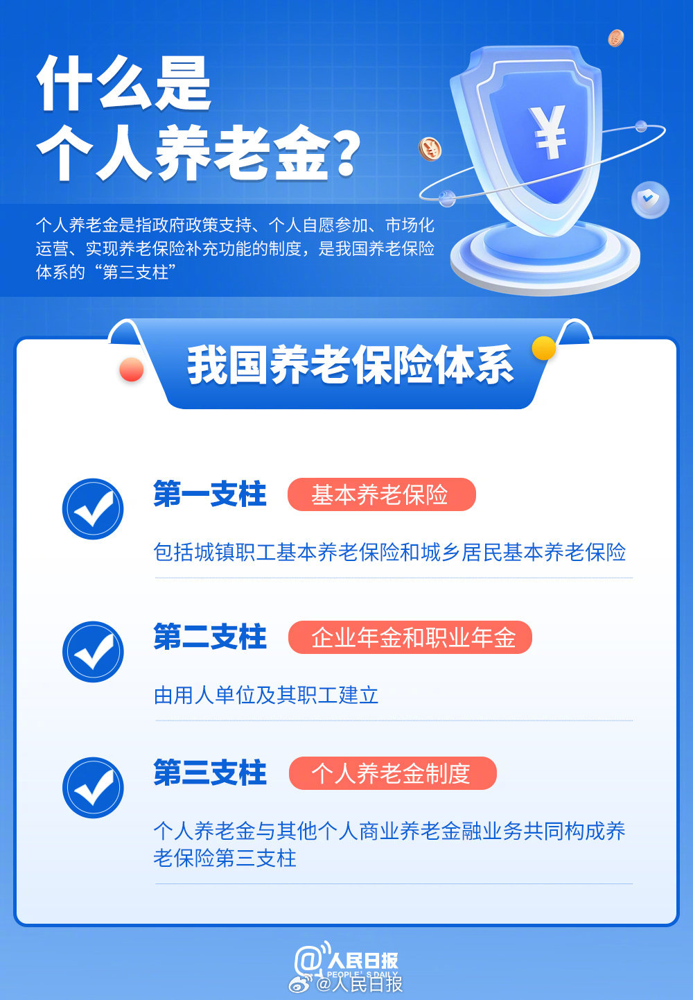 個人養(yǎng)老金是指政府政策支持、個人自愿參加、市場化運(yùn)營、實現(xiàn)養(yǎng)老保險補(bǔ)充功能的制度,是我國養(yǎng)老保險體系的“第三支柱”。2024年12月15日起,個人養(yǎng)老金制度推廣至全國。什么是個人養(yǎng)老金制度?哪些人可以開通個人養(yǎng)老金賬戶?如何領(lǐng)取個人養(yǎng)老金?九圖了解最新政策,收藏!