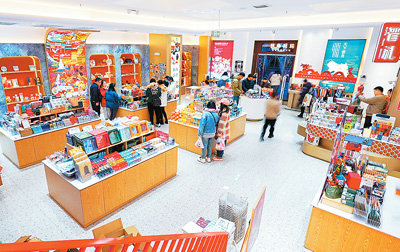游客在“晉禮城市會(huì)客廳”文創(chuàng)店選購(gòu)。