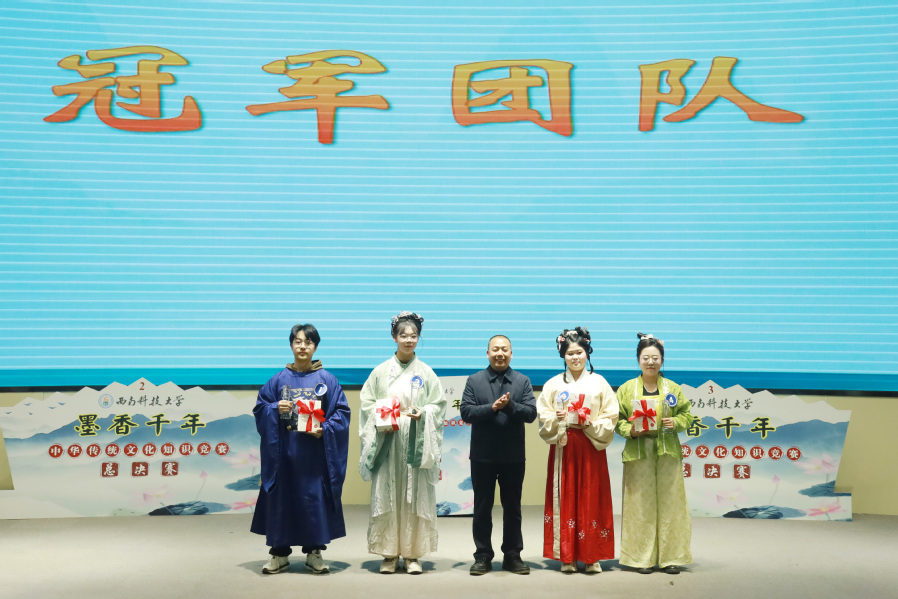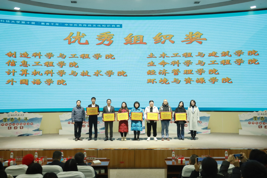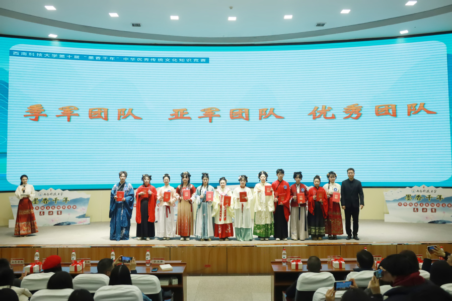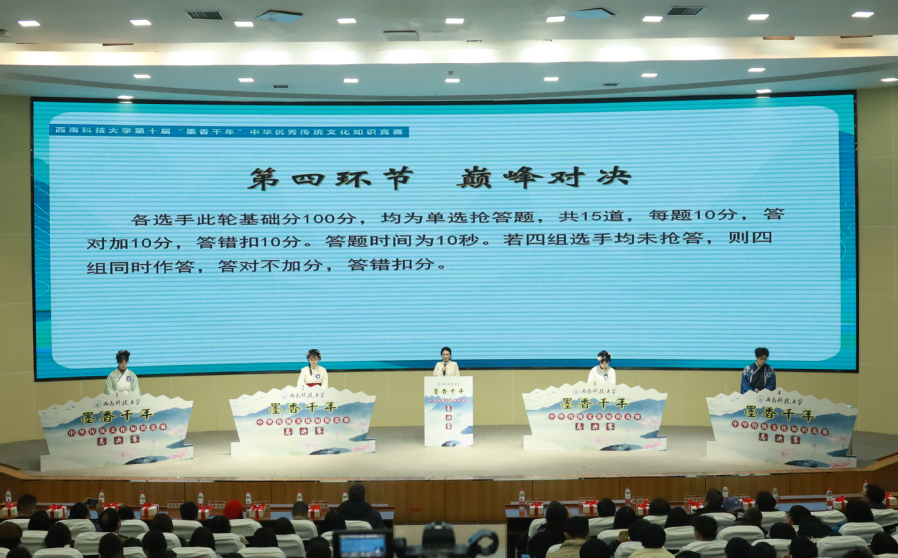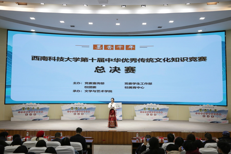 12月15日晚,西南科技大學(xué)第十屆“墨香千年”中華優(yōu)秀傳統(tǒng)文化知識競賽總決賽在辦公樓學(xué)術(shù)報告廳舉行。學(xué)校黨委副書記、紀(jì)委書記肖必恒出席活動并頒獎。學(xué)校相關(guān)職能部門負(fù)責(zé)人及各學(xué)院分管領(lǐng)導(dǎo)、師生代表600余人觀摩比賽。