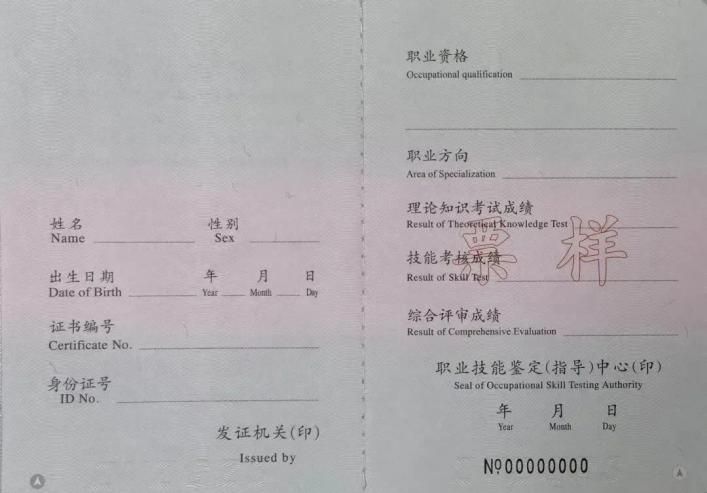 正規(guī)的技能人員職業(yè)資格證書(shū)樣式
