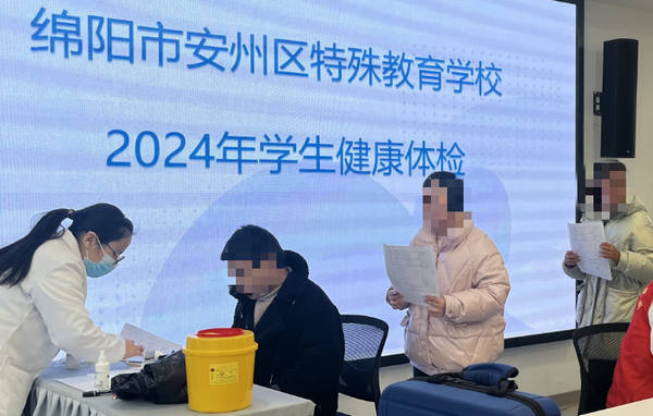 為了全面了解學(xué)生的健康狀況,及時(shí)發(fā)現(xiàn)和解決可能存在的健康問題,12月18日,安州區(qū)界牌衛(wèi)生院組織醫(yī)護(hù)人員免費(fèi)為安州區(qū)特殊教育學(xué)校全體師生開展了以“體檢進(jìn)校園 健康伴我行”為主題的2024年秋常規(guī)健康體檢活動(dòng)。
