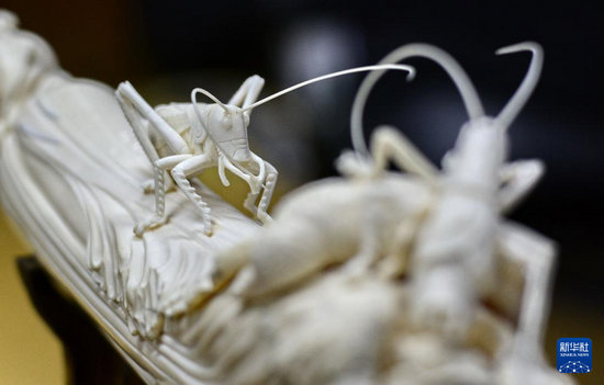李春珂設(shè)計(jì)制作的牙雕作品(猛犸象牙)(12月17日攝)。