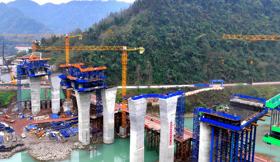 12月24日,達州市宣漢縣土黃鎮(zhèn),總長2100余米的西渝高鐵樊噲站1號六線特大橋、2號六線特大橋正進行橋梁上部結(jié)構(gòu)施工。對會議指出的“加快推進‘十四五’重大工程和重點項目建設(shè),努力形成更多實物工作量”,中鐵六局康渝項目部副經(jīng)理寧建華深有感觸:“我們正搶抓有利施工期,1900余名建設(shè)者同時作業(yè),努力為穩(wěn)定經(jīng)濟大盤作出更多貢獻。”