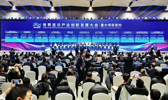 世界顯示產(chǎn)業(yè)創(chuàng)新發(fā)展大會重大項目簽約儀式現(xiàn)場。華小峰 攝