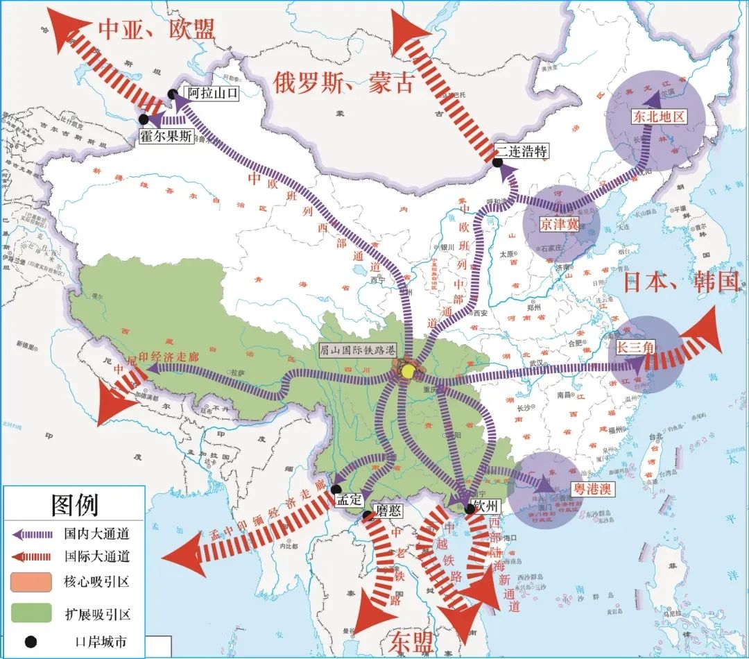 ▲眉山國際鐵路港吸引輻射區(qū)域范圍