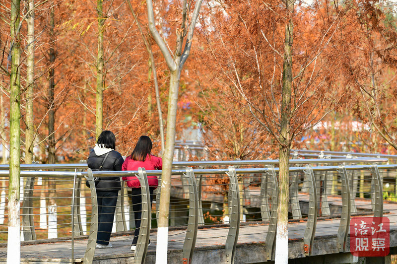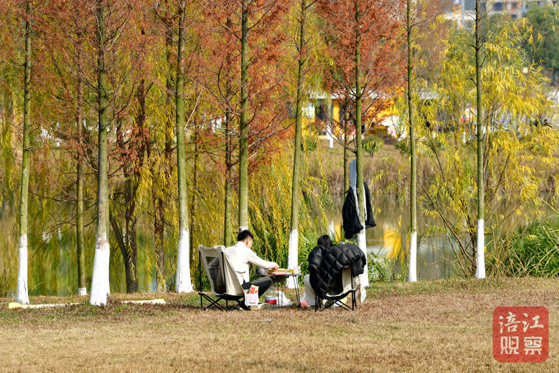 天藍(lán)水清、水鳥翱翔,湖中植被茂密、層林盡染,市民和游客或散步、或曬太陽、或圍爐煮茶……在溫暖悠閑的時光里,感受歲月的美好與溫柔。