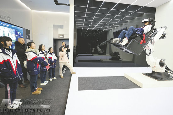 在中國(guó)(綿陽)科技城5G科技園,青少年現(xiàn)場(chǎng)體驗(yàn)趣味交互項(xiàng)目