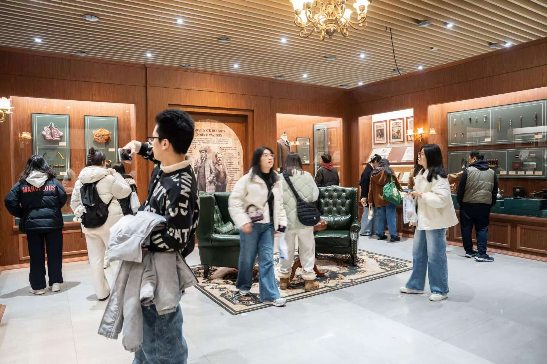 “‘重返貝克街:沉浸式福爾摩斯探案體驗展’開展首日,就吸引了超1300的觀眾,能夠感受到觀眾的熱情高漲。”成都博物館相關負責人表示,“成都博物館作為城市文化客廳,不僅為市民游客提供不同文化背景的展覽活動,也歡迎來自世界各地的人們走進館中,更深入地感受成都這座城市的歷史和人文魅力。”同時,館方也提示觀眾,新展中不僅有豐富的實景打卡點位、與NPC的對話環(huán)節(jié),還有更多“彩蛋”等待觀眾們一一解鎖,“除了展柜中的展品,現(xiàn)場幾乎每一件物品都可以觸摸、互動,期待大家一起來大膽探索。”