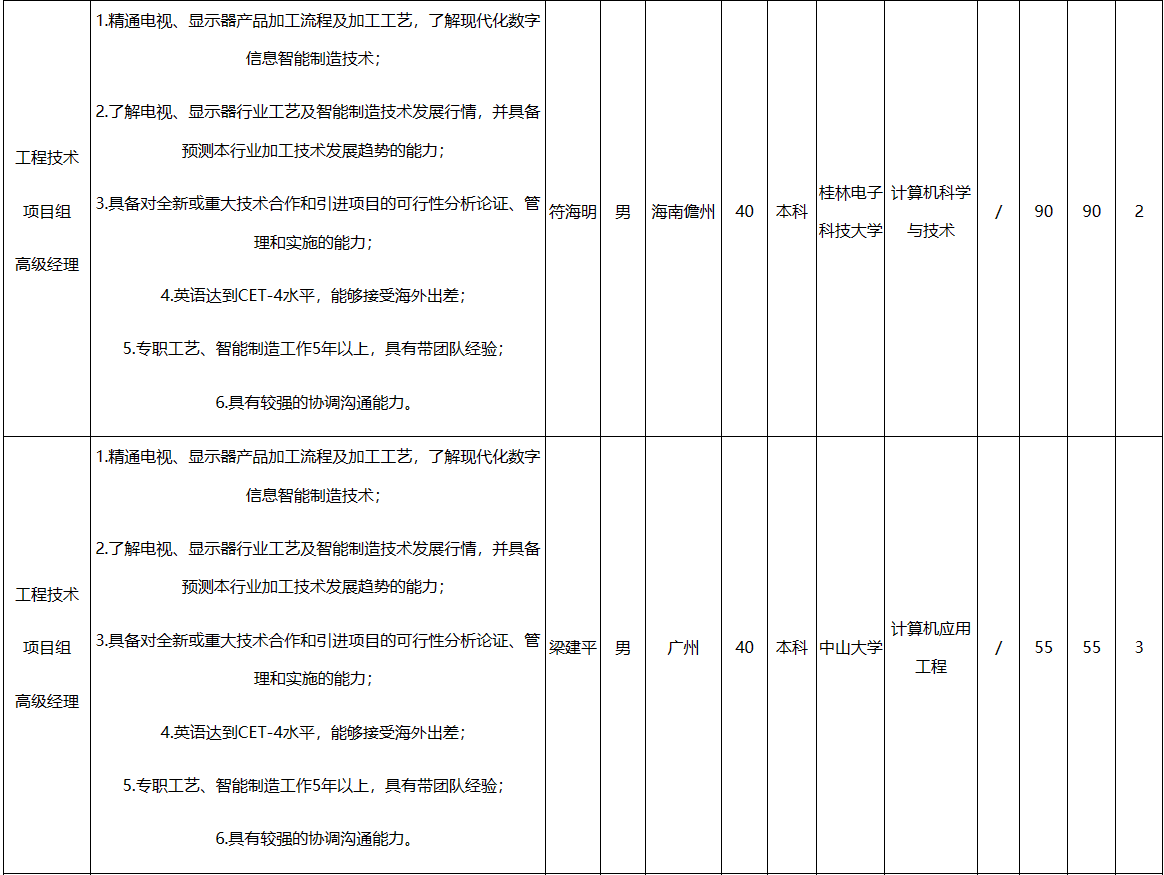 公示期為:2024年2月1日至 2024年2月4日。公示期間,如有異議,請(qǐng)以電話、信函等方式向廣東長虹電子有限公司運(yùn)營人事部反映。