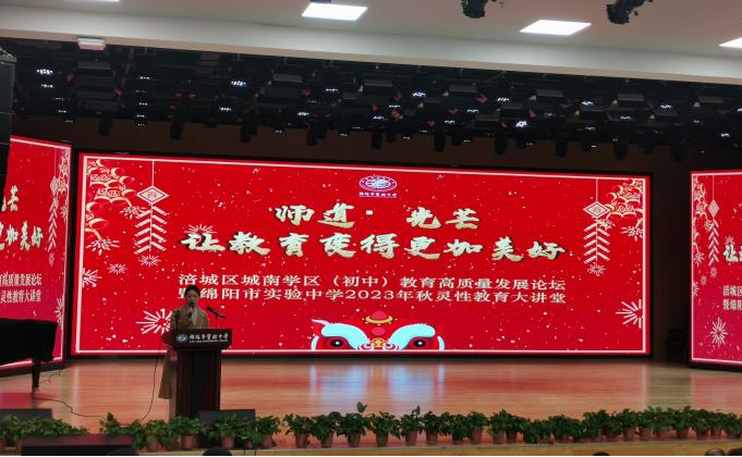 眷眷之心,掌燈引渡,循著光的方向前行。為了進(jìn)一步提高教師隊(duì)伍素養(yǎng)、不斷推動(dòng)教育高質(zhì)量發(fā)展,1月28日上午8時(shí)30分,涪城區(qū)城南學(xué)區(qū)(初中)教育高質(zhì)量發(fā)展論壇暨綿陽市實(shí)驗(yàn)中學(xué)2023年秋靈性教育大講堂活動(dòng)在南河校區(qū)學(xué)術(shù)廳隆重召開。本次論壇由綿陽市實(shí)驗(yàn)中學(xué)教科室主任肖靜主持,共有來自綿陽市實(shí)驗(yàn)中學(xué)、綿陽六中、綿陽九中、綿陽十五中、楊家中學(xué)初中部400余名教師參加。