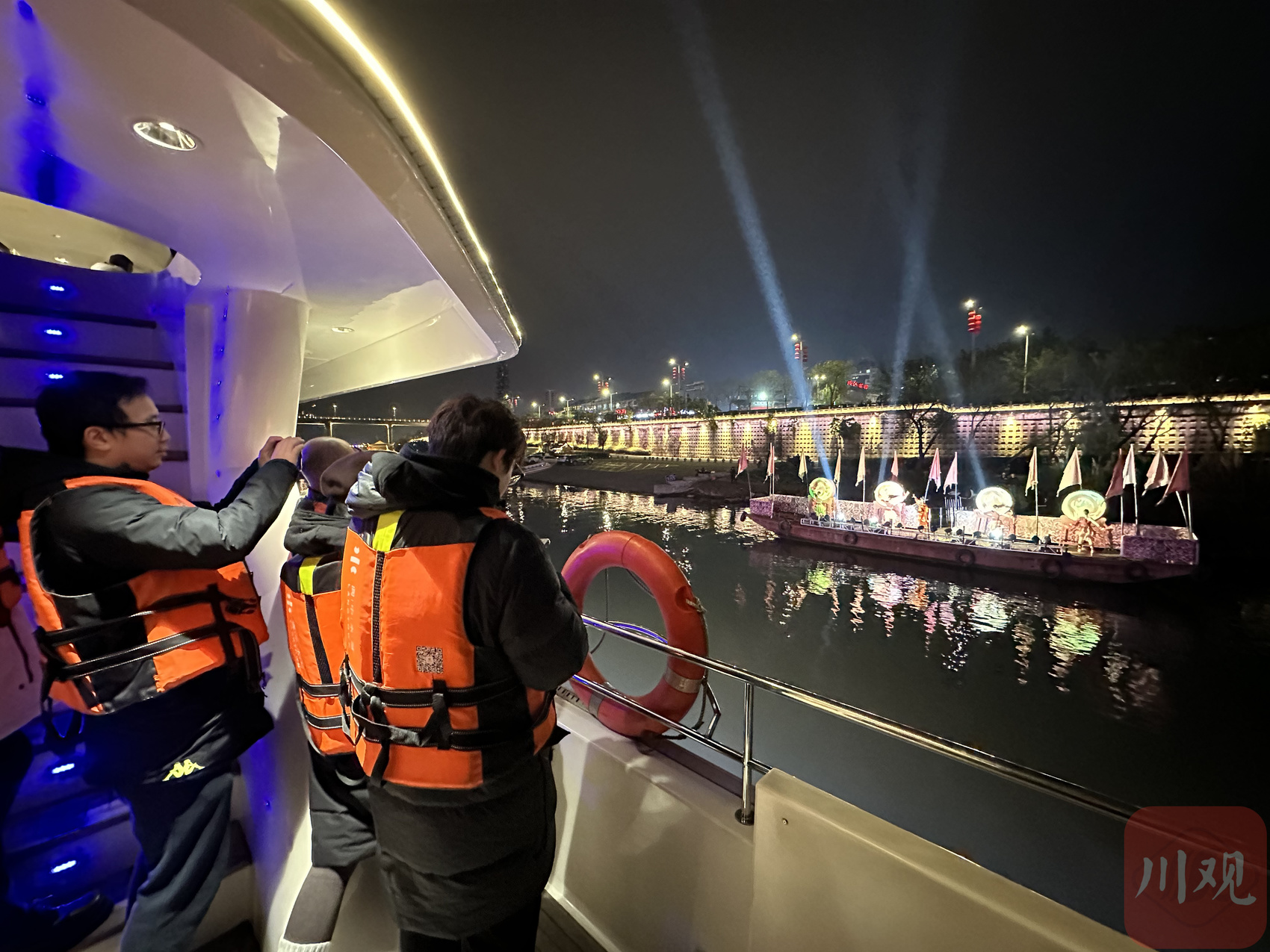 付梓杰是西昌人,今年大四,正在放寒假,和家人一起出來旅游。家里親戚多,5輛車一路輕松自駕,玩完劍門關后,又直奔閬中古城而來。“船開了!”閑聊中,小表妹一聲驚呼。只見遠處亭臺樓閣燈火輝煌,兩岸燈光不斷后退 ,才讓人反應過來船在移動。