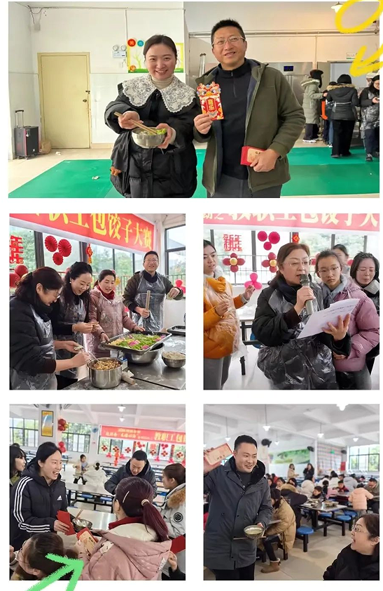 幸福不止味蕾的觸動(dòng),還有咬到“彩頭”的激動(dòng)。該校領(lǐng)導(dǎo)們也大展身手,包了66個(gè)彩頭餃子,為全校教師送去新春最美好的祝福。吃到彩頭餃子的老師便能得到學(xué)校領(lǐng)導(dǎo)們準(zhǔn)備的新年紅包,寓意著這一年都有好運(yùn)氣。