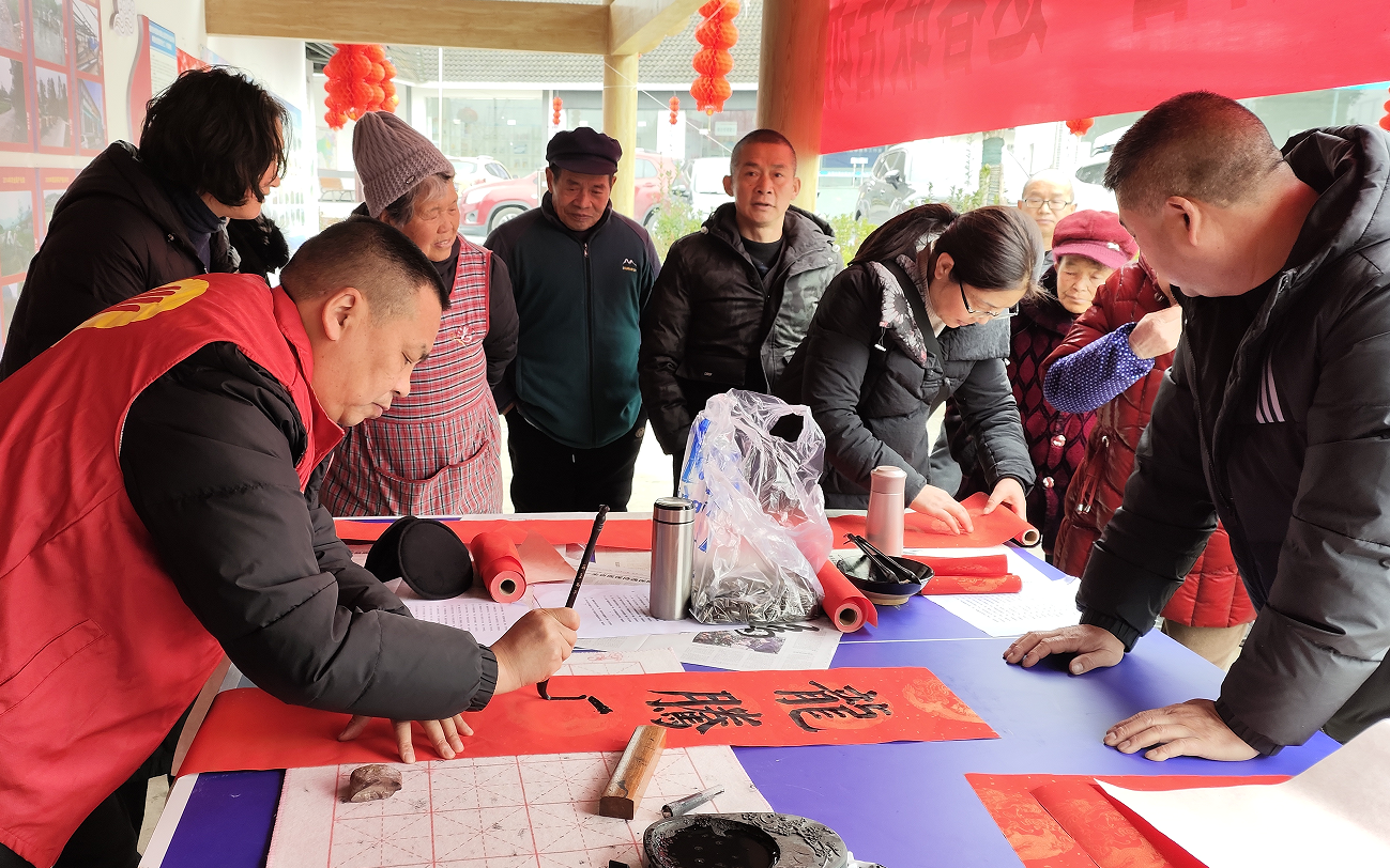 為匯聚文化力量,助力鄉(xiāng)村振興提質(zhì)增效,讓文化惠民政策深入基層,弘揚傳統(tǒng)文化,讓更多鄉(xiāng)村群眾享受文化福利,2月2日,安州區(qū)雎水鎮(zhèn)小學(xué)黨支部“文化惠民進萬家 迎新春 送春聯(lián)助力鄉(xiāng)村振興活動”走進安州區(qū)碧荷園景區(qū),免費為游客和村民寫春聯(lián)、寫福字,增強村民和游客獲得感、幸福感。