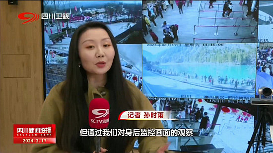 記者 孫時(shí)雨:這里是四川省文化和旅游廳,雖然八天的春節(jié)假期已經(jīng)接近尾聲,但通過我們對(duì)身后監(jiān)控畫面的觀察,各大景區(qū)的客流量并沒有明顯的回落,例如峨眉山、九寨溝、劍門關(guān)等熱門景區(qū)依舊游人如織。