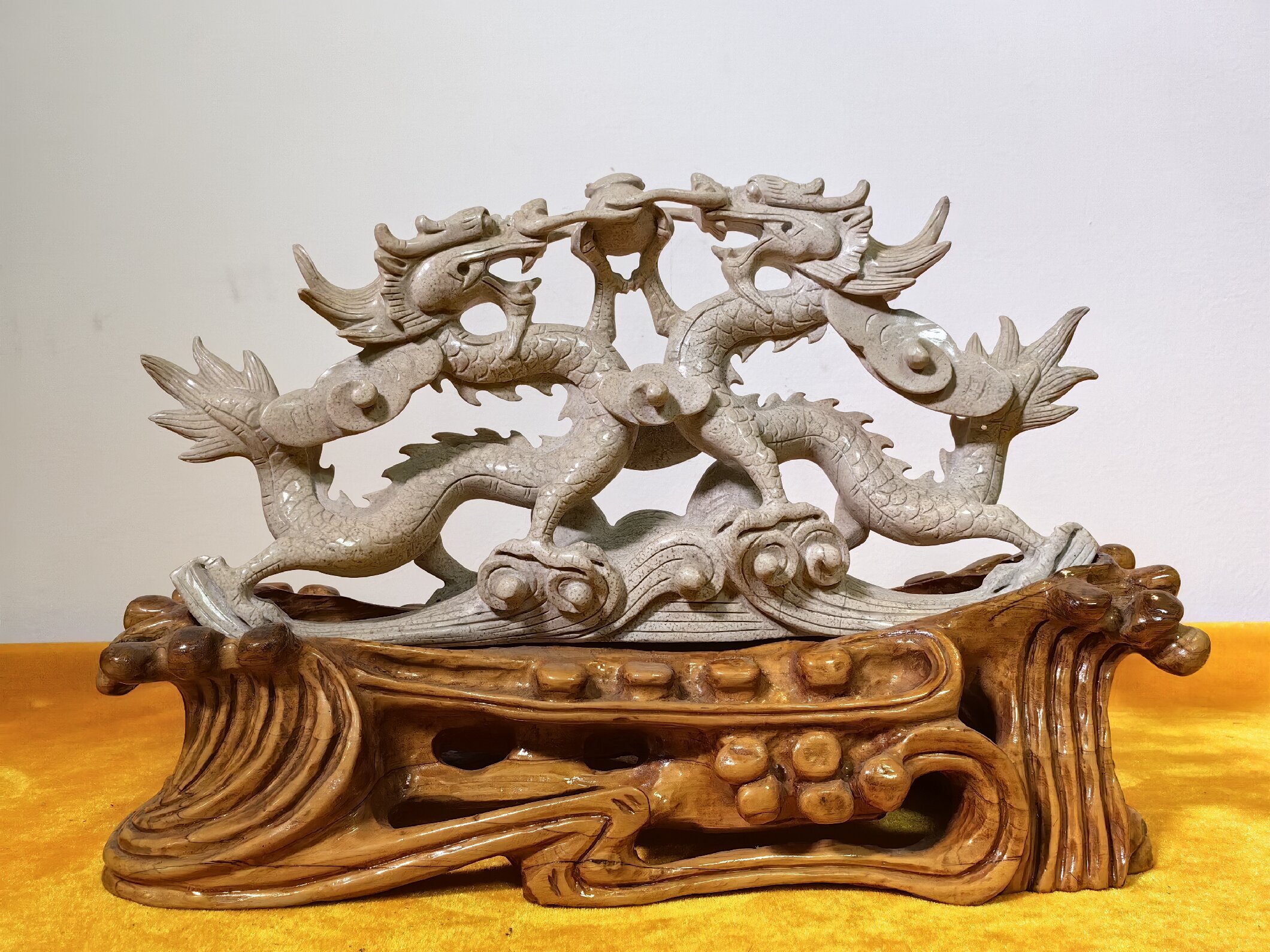 玉龍化石雕刻《龍鳳花熏》(局部)