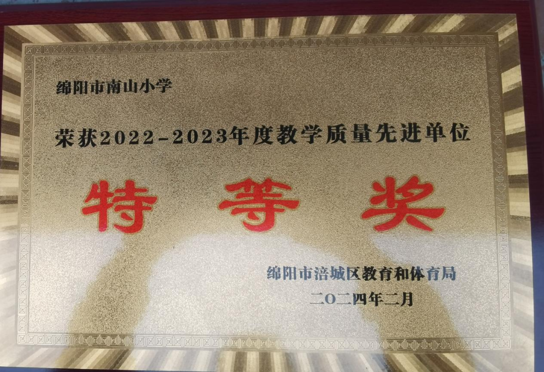奮楫篤行,履踐致遠(yuǎn)。春華秋實(shí),碩果芬芳。2024年2月19日,涪城區(qū)召開教育教學(xué)改革實(shí)驗(yàn)區(qū)建設(shè)工作會(huì)暨2022—2023學(xué)年度學(xué)校教育質(zhì)量評(píng)價(jià)表彰大會(huì)上,綿陽市實(shí)驗(yàn)小學(xué)南山校區(qū)繼2021—2022學(xué)年度榮獲涪城區(qū)學(xué)??冃Э己?、教學(xué)質(zhì)量特等獎(jiǎng)后,繼續(xù)榮獲2022—2023學(xué)年度:教學(xué)質(zhì)量先進(jìn)單位特等獎(jiǎng)、綜合績效考核先進(jìn)單位一等獎(jiǎng)、畢業(yè)生就近入學(xué)先進(jìn)單位一等獎(jiǎng)。