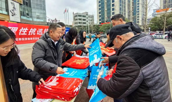 綿陽新聞網(wǎng)訊 為提高居民警惕投資陷阱、遠離非法集資、保護財產(chǎn)安全,讓居民過好安全祥和年,春節(jié)期間,華西證券科創(chuàng)金融投教基地(以下簡稱“投教基地”)聯(lián)合綿陽市金融工作局、科技城新區(qū)財政金融局、科技城財政金融國資局、涪城區(qū)金融工作辦、游仙區(qū)財政局、經(jīng)開區(qū)金融工作辦、三臺縣金融工作辦等共同開展打非防非宣傳活動,覆蓋人數(shù)超過60萬人次。