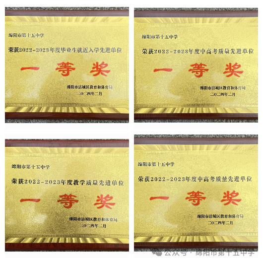 2024年2月19日,涪城區(qū)召開了2024年推進(jìn)義務(wù)教育教學(xué)改革實驗區(qū)建設(shè)工作會,會上,表揚(yáng)了2022-2023年度教育教學(xué)先進(jìn)單位和先進(jìn)個人,綿陽市第十五中學(xué)榮獲2022-2023年度“綜合績效考核先進(jìn)單位一等獎”“中高考質(zhì)量先進(jìn)單位一等獎”“教學(xué)質(zhì)量先進(jìn)單位一等獎”“畢業(yè)生就近入學(xué)先進(jìn)單位一等獎”殊榮。