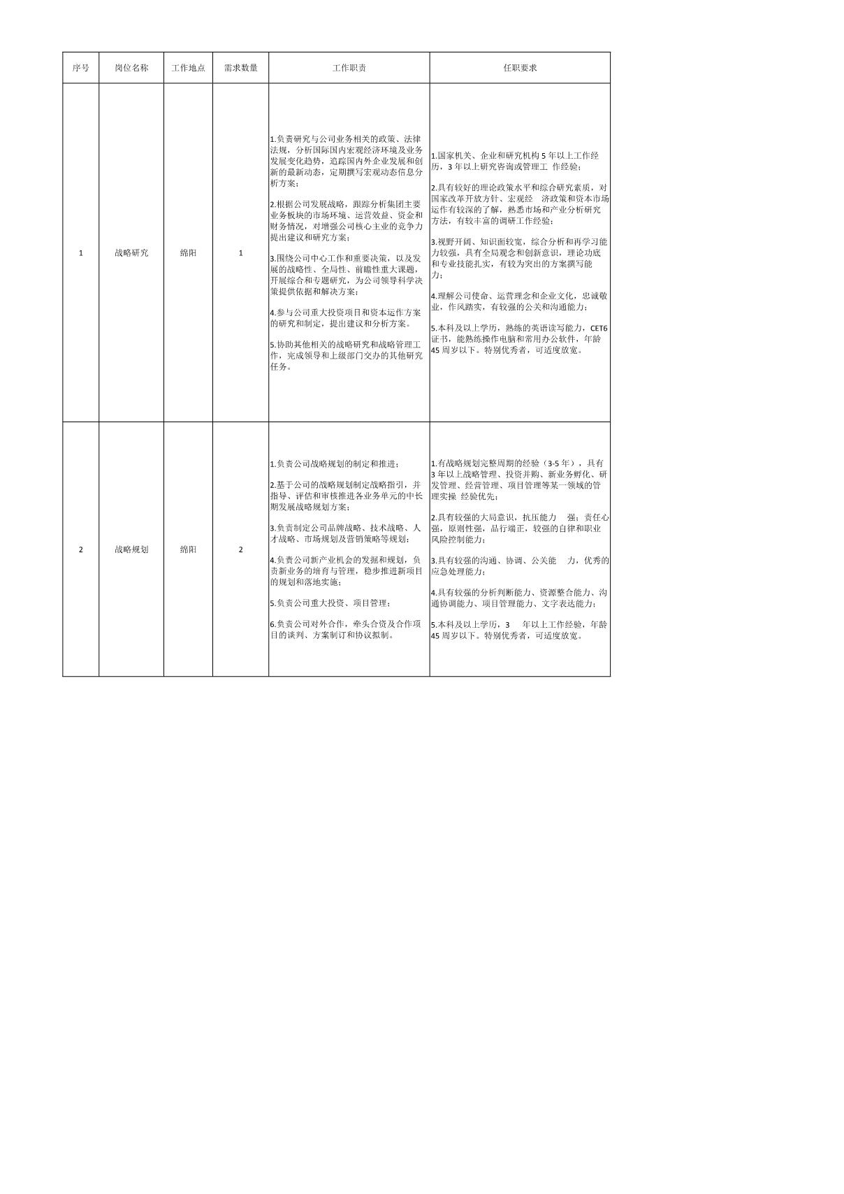 根據(jù)公司經(jīng)營發(fā)展需要,面向社會(huì)公開招聘以下崗位: