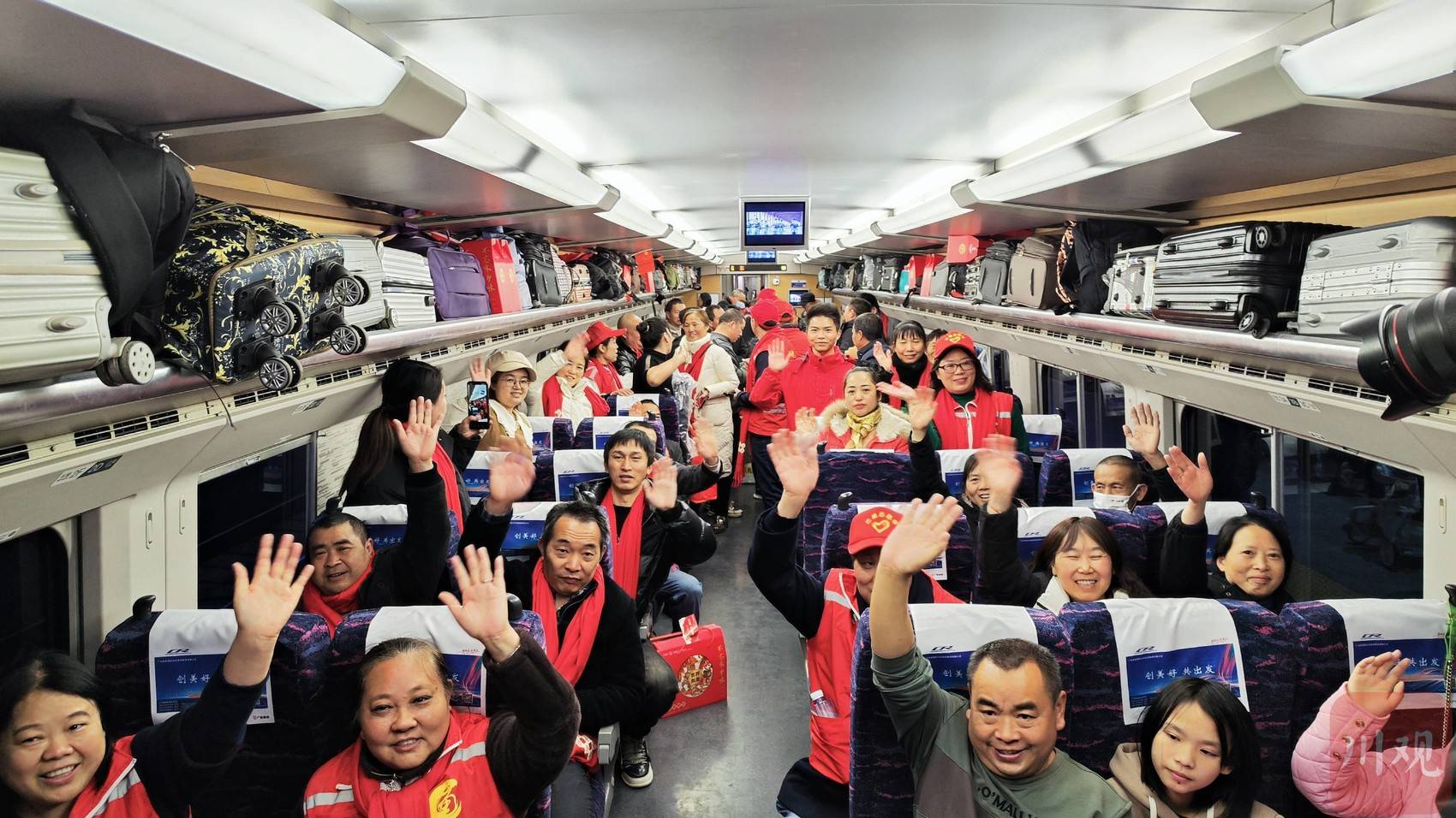這趟列車是由四川省人力資源和社會(huì)保障廳、廣東省人力資源和社會(huì)保障廳共同組織的2024年春節(jié)后首趟省際勞務(wù)協(xié)作返崗專列,依次在綿陽(yáng)站、德陽(yáng)站、成都東站、宜賓西站???,為600余名川籍農(nóng)民工赴粵返崗務(wù)工提供免費(fèi)車票。