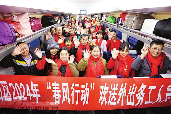務(wù)工專列還在有序開行,滿載著外出務(wù)工人員的希望,向著幸福方向奔馳前進(jìn)?!。ㄓ浾?彭雪/文 陳冬冬/圖)