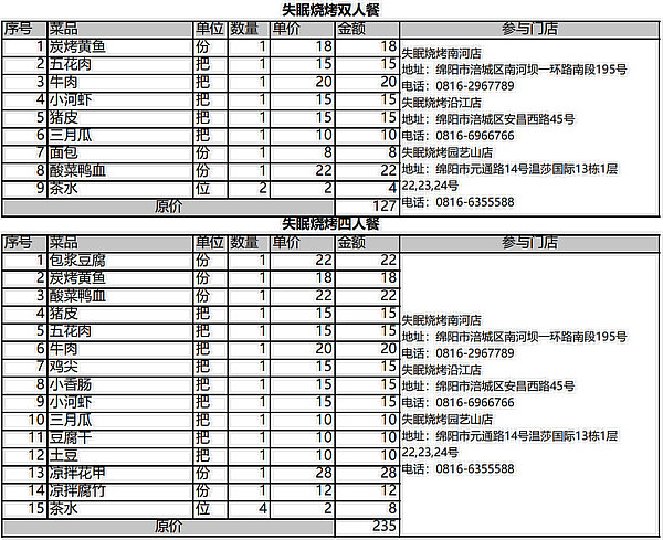 失眠燒烤雙人餐一套