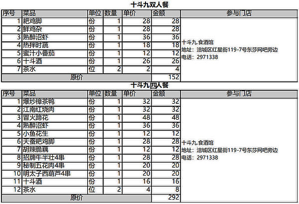 十斗九雙人餐一套