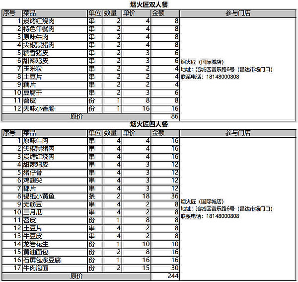 煙火匠雙人餐一套