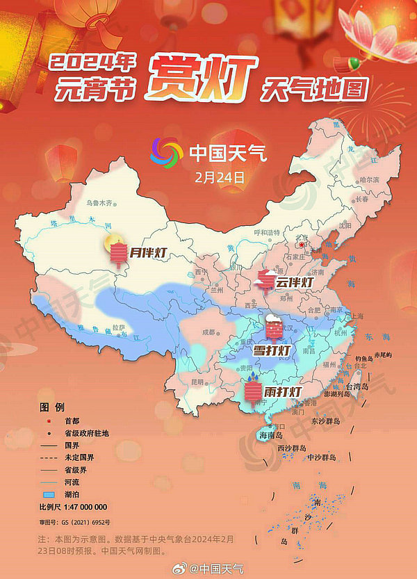 “有燈無月不娛人,有月無燈不算春。”又一年元宵佳節(jié)將至,一場燈花月影間的中國式浪漫將上演。今年元宵節(jié)(2月24日)恰逢周末,全國各地花燈璀璨,年度“最小滿月”還會亮相夜空,節(jié)日氛圍感直接拉滿。中國天氣網(wǎng)推出元宵節(jié)賞燈天氣地圖,看哪里可以燈月同賞,哪里“雪打燈”。