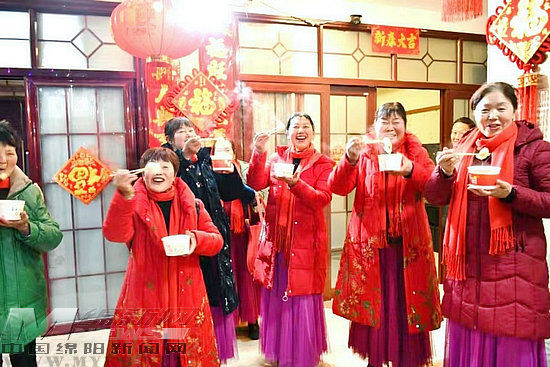 綿陽新聞網(wǎng)訊 炫目閃亮的燈火秀、優(yōu)雅靈動的扇子舞、熱氣騰騰的湯圓……2月22日晚,在涪城區(qū)新皂鎮(zhèn)梅家溝村孫家大院內(nèi),村民們正在家門口享受有滋有味的“節(jié)日大餐”。