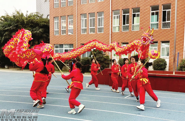 當(dāng)天,綿陽市實(shí)驗(yàn)小學(xué)以“向著春的方向奔跑”為主題拉開開學(xué)典禮帷幕,只見兩條巨龍在師生的巧手之下翻騰跳躍,氣勢如虹。校長涂久尚介紹,全校師生歡聚一堂,以龍文化為載體,將中國傳統(tǒng)文化與學(xué)校育人理念相結(jié)合,讓孩子們在龍年新學(xué)期開啟時感受中國傳統(tǒng)文化。