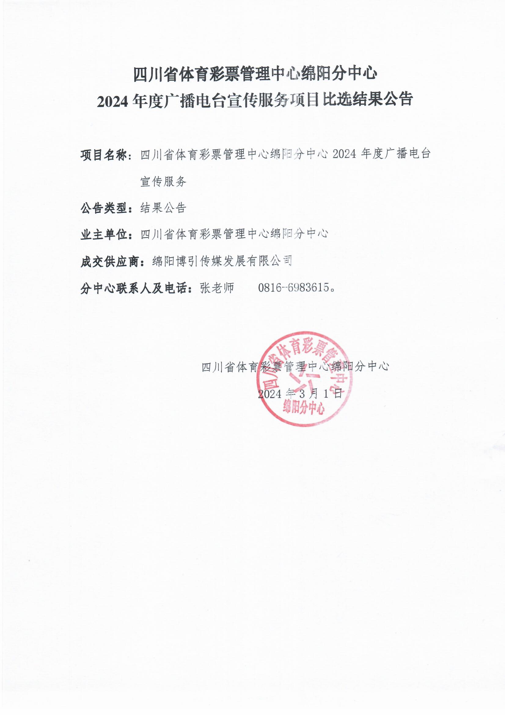四川省體育彩票管理中心綿陽(yáng)分中心2024年度廣播電臺(tái)宣傳服務(wù)項(xiàng)目比選結(jié)果公告