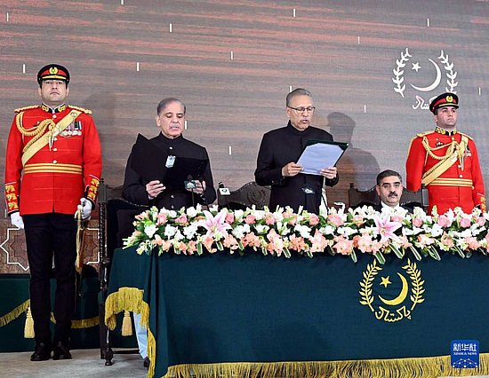 新華社伊斯蘭堡3月4日電(記者蔣超)巴基斯坦新當(dāng)選總理夏巴茲·謝里夫4日在巴首都伊斯蘭堡總統(tǒng)府宣誓就職。