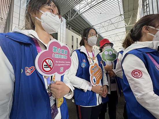 第五屆中國國際進口博覽會上的控煙志愿者隊伍。新華每日電訊記者 袁全 攝