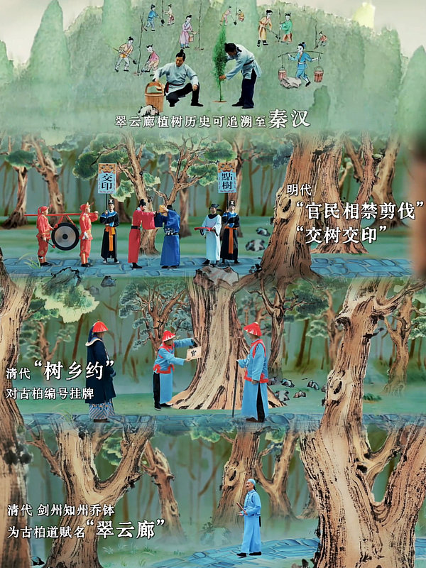 川臺(tái)用AI+國(guó)畫手法,還原了古蜀道與翠云廊的“成長(zhǎng)史”,展現(xiàn)“三百里程十萬樹”的生態(tài)與人文之美。