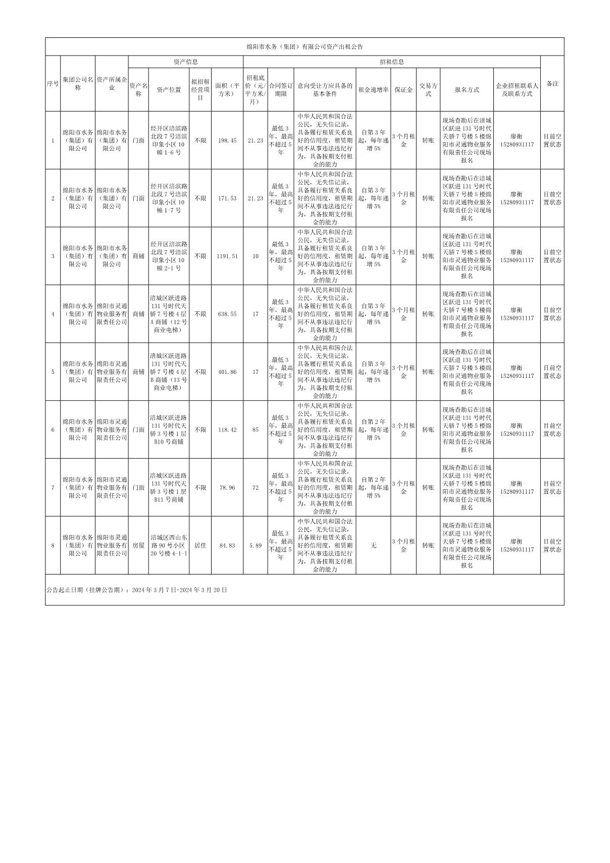 綿陽市水務(wù)(集團(tuán))有限公司資產(chǎn)出租公告