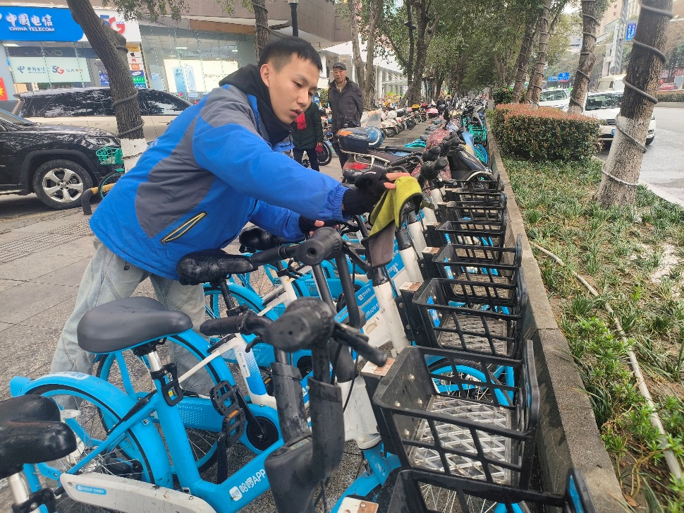 單車回倉(cāng)后,專業(yè)維修人員將對(duì)全身零部件進(jìn)行全面檢查及更換,再進(jìn)行高壓水槍噴洗、全車清潔擦拭、噴灑消毒等深度清洗,以保證車輛達(dá)到出庫(kù)標(biāo)準(zhǔn)。