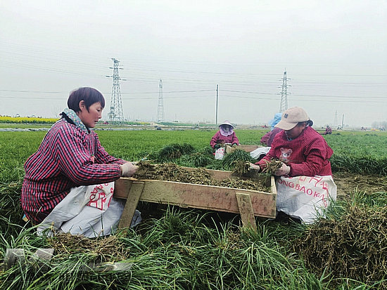 麥冬種植、收割的過程,需要大量的人工。每到麥冬采收季,附近的村民也會(huì)來幫忙。“我家離這里很近,這段時(shí)間也不忙,出來幫忙采摘麥冬,四十多天能掙接近4000元錢呢。”豐谷鎮(zhèn)和平村村民李鳳秀一邊采摘麥冬一邊說。
