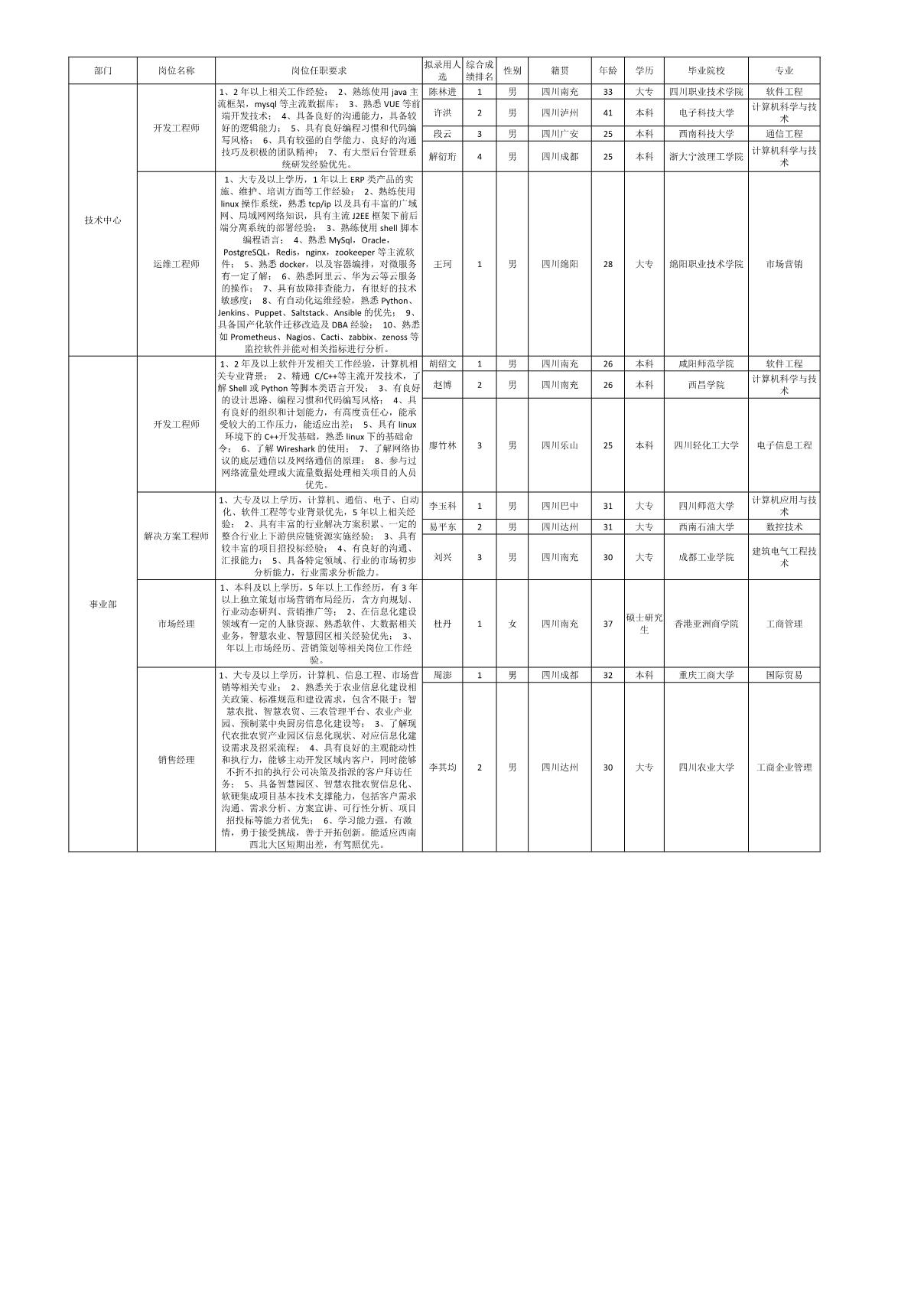 根據(jù)成都九洲電子信息系統(tǒng)股份有限公司發(fā)布的招聘公告及招聘相關(guān)規(guī)定,經(jīng)筆試、面試、考察、體檢等程序,擬錄用王珂等同志到成都九洲電子信息系統(tǒng)股份有限公司工作,現(xiàn)予以公示,具體情況如下:
