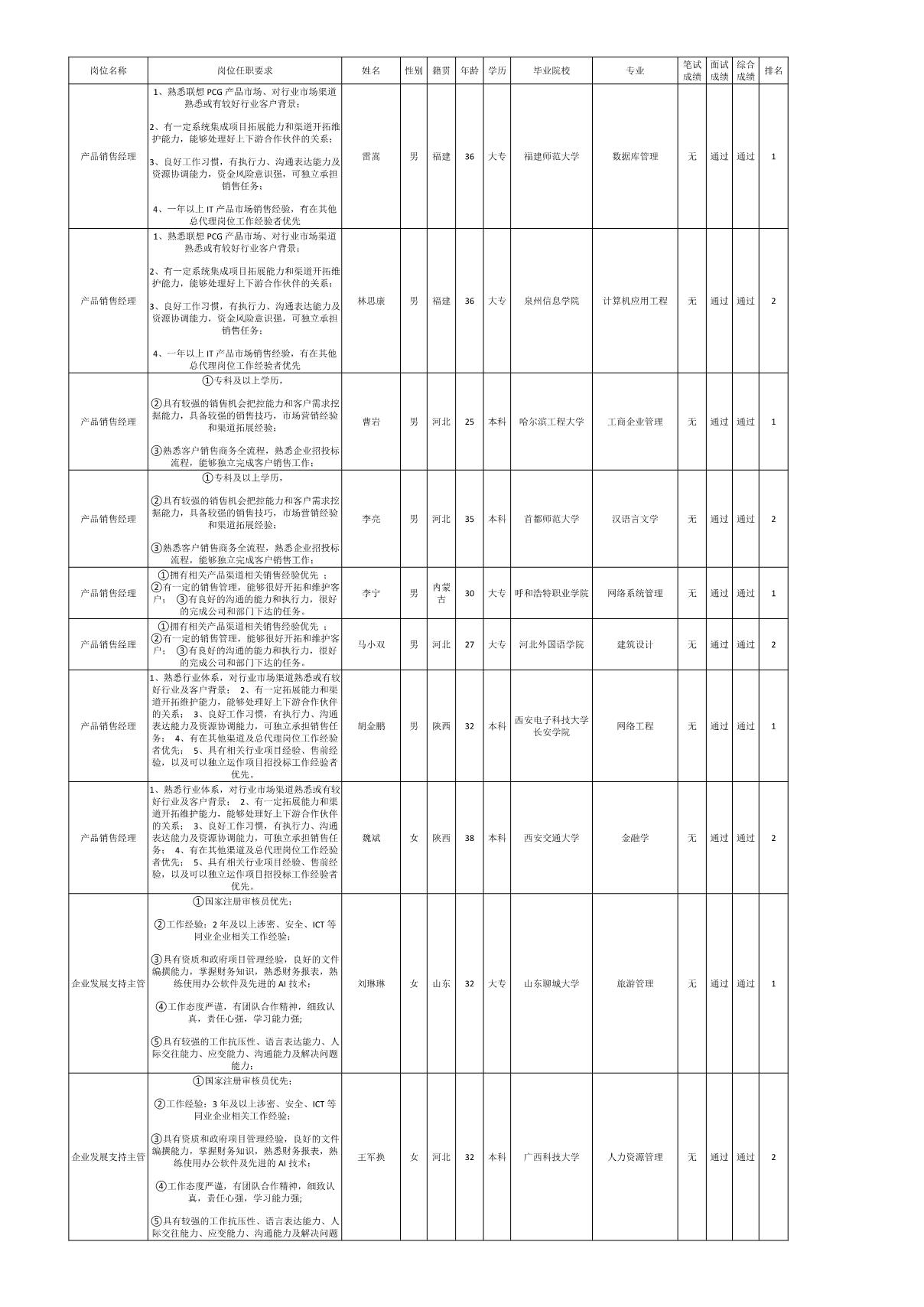 根據(jù)四川長虹佳華信息產(chǎn)品有限責(zé)任公司發(fā)布的招聘公告及招聘相關(guān)規(guī)定,經(jīng)筆試、面試等程序,現(xiàn)將筆試(面試)成績予以公示。