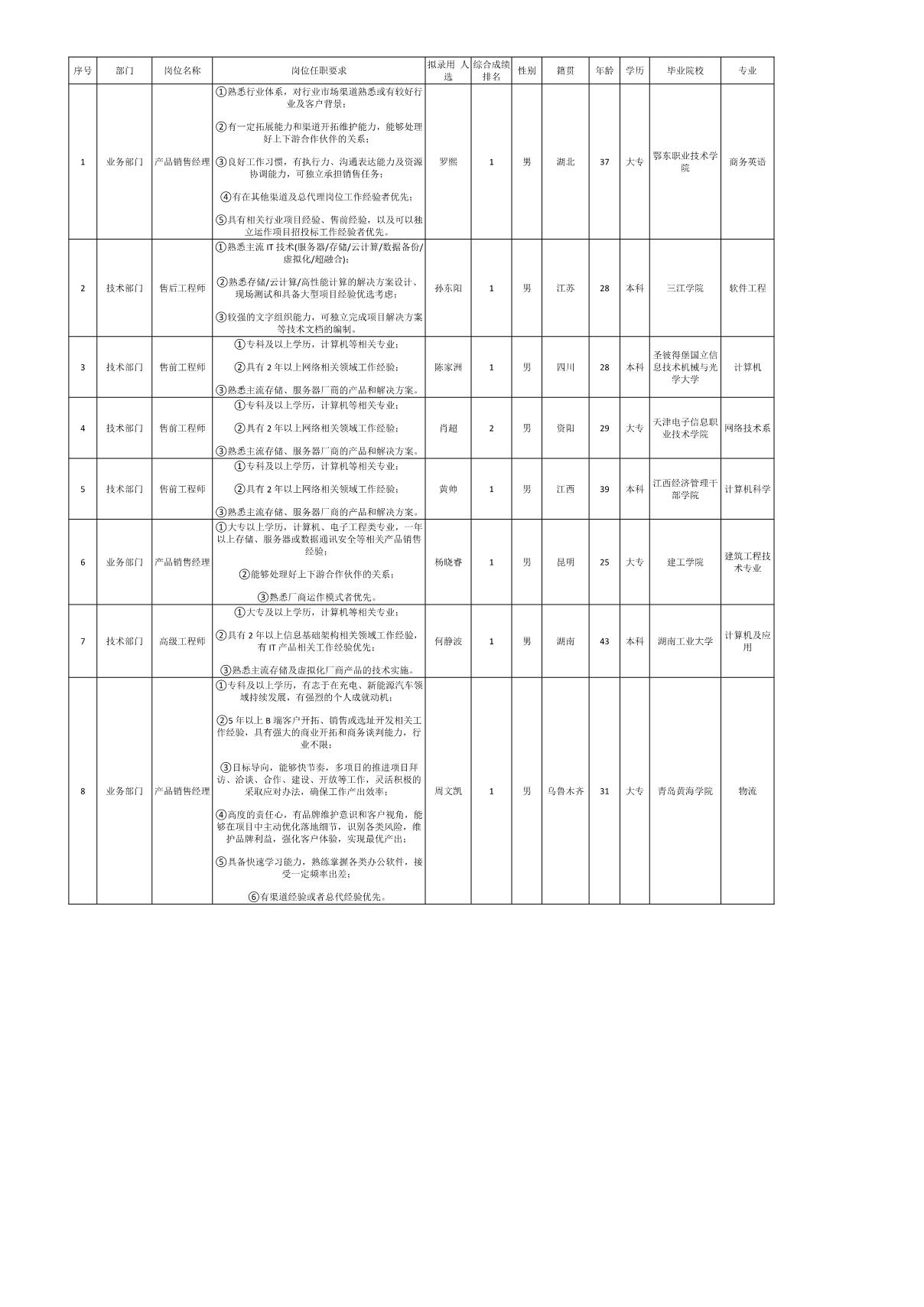 根據(jù)四川長虹佳華信息產(chǎn)品有限責(zé)任公司發(fā)布的招聘公告及招聘相關(guān)規(guī)定,經(jīng)面試、考察、體檢等程序,擬錄用羅熙、孫東陽、陳家洲、肖超、黃帥、楊曉睿、何靜波、周文凱同志到四川長虹佳華信息產(chǎn)品有限責(zé)任公司工作,現(xiàn)予以公示,具體情況如下: