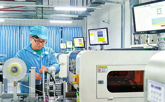 3月5日,綿陽安州高新區(qū),四川愛聯(lián)科技股份有限公司SMT車間內(nèi),工人在生產(chǎn)智慧物聯(lián)模組產(chǎn)品。(張祖強(qiáng) 攝)