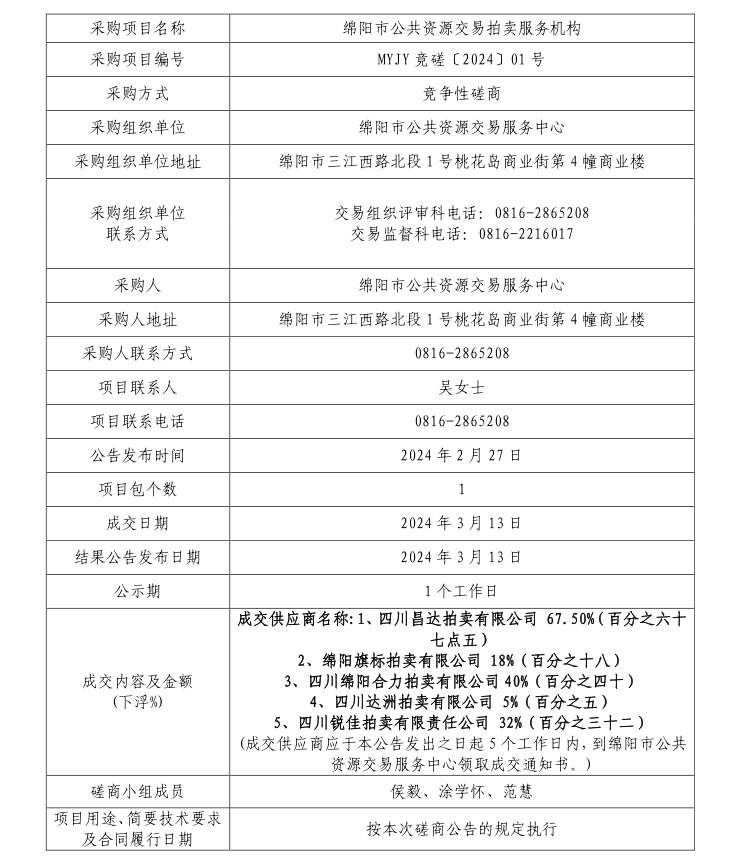 關(guān)于“綿陽(yáng)市公共資源交易拍賣服務(wù)機(jī)構(gòu)”項(xiàng)目采購(gòu)結(jié)果的公告