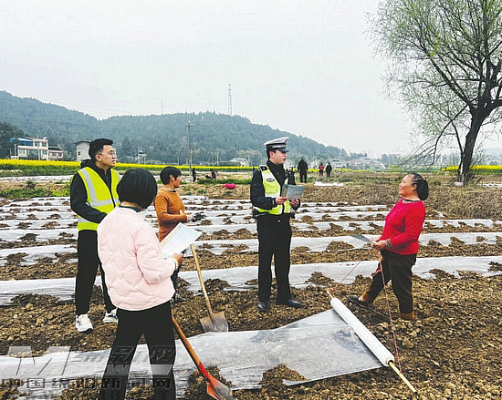 3月10日上午,游仙區(qū)鹽泉鎮(zhèn)雨臺(tái)村的田地里,瓜農(nóng)們正搶抓農(nóng)時(shí),忙著栽種西瓜苗和蓋膜,為新一年的增收致富打?qū)嵒A(chǔ)。田野間,交警手拿交通安全宣傳彩頁(yè),逐一為村民們發(fā)放。“越是農(nóng)忙,越要繃緊交通安全這根弦。”過(guò)程中,交警們用“拉家常”的方式,向村民們講解了“客貨混裝”“超員超載”“酒醉駕”的危險(xiǎn)性,同步普及“一盔一帶”和“不穿插超越”等交通常識(shí)的重要性。
