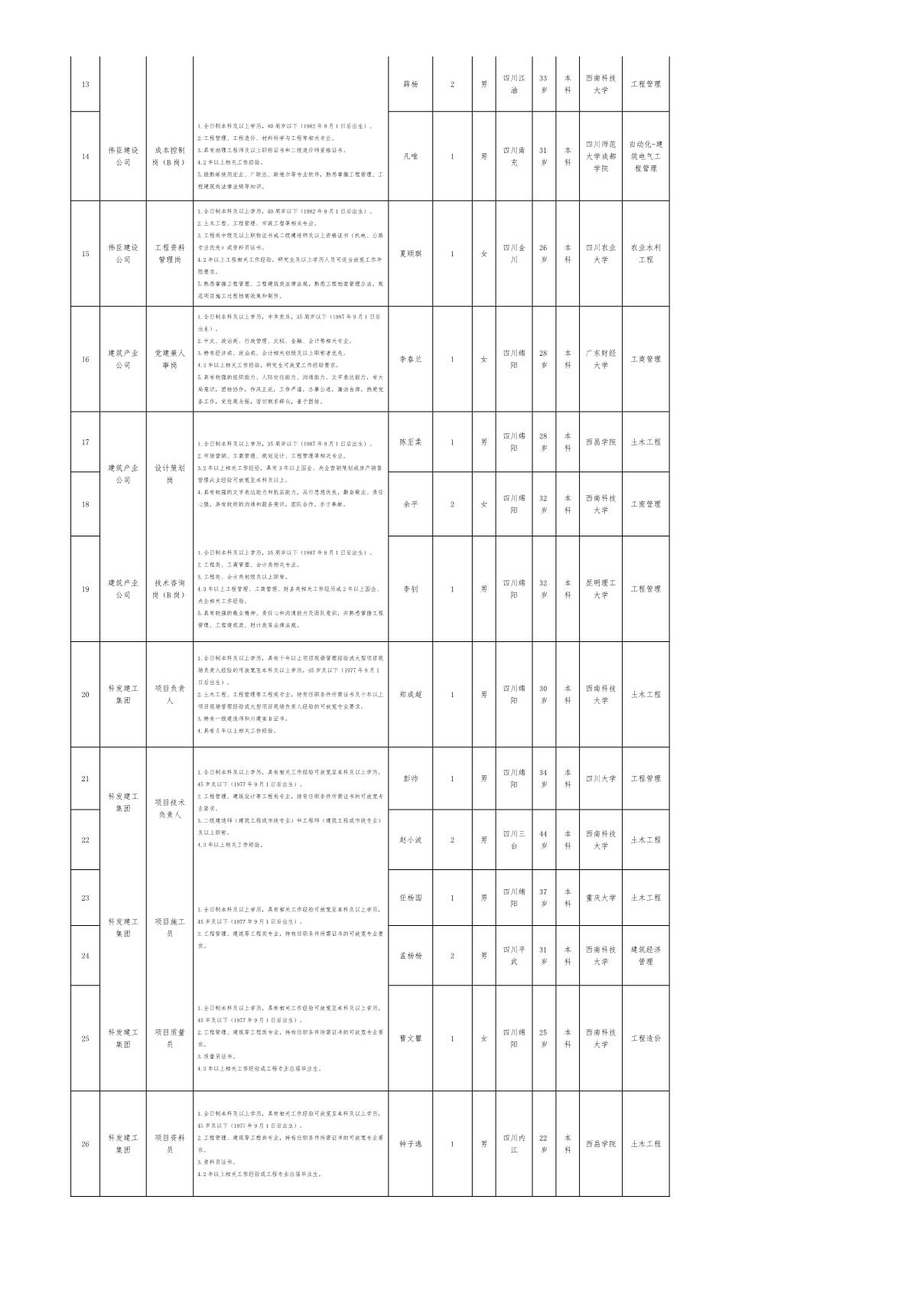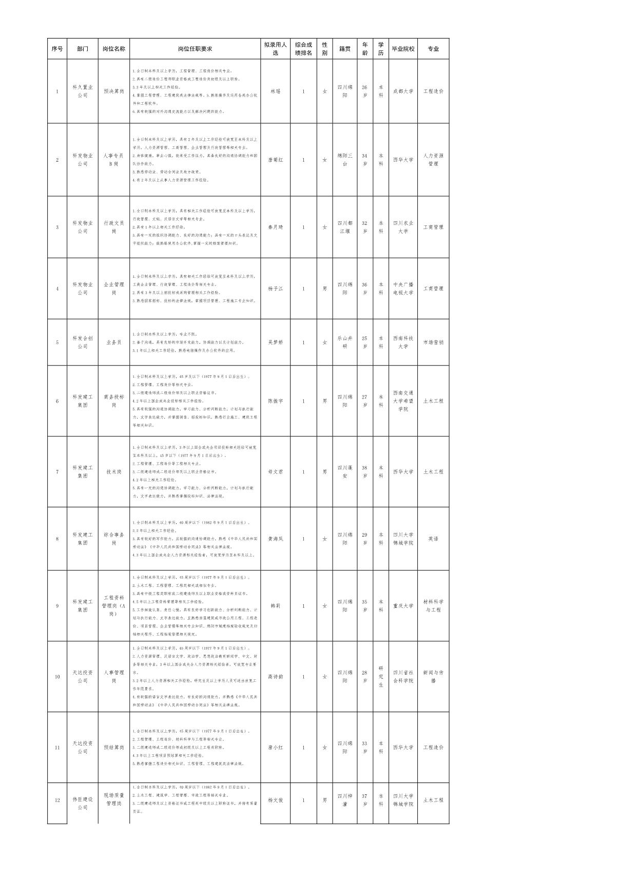 根據(jù)集團(tuán)發(fā)布的招聘公告及招聘相關(guān)規(guī)定,經(jīng)筆試、面試、考察、體檢等程序,擬錄用林瑤等26名同志到科久置業(yè)等公司崗位工作,現(xiàn)予以公示,具體情況如下: